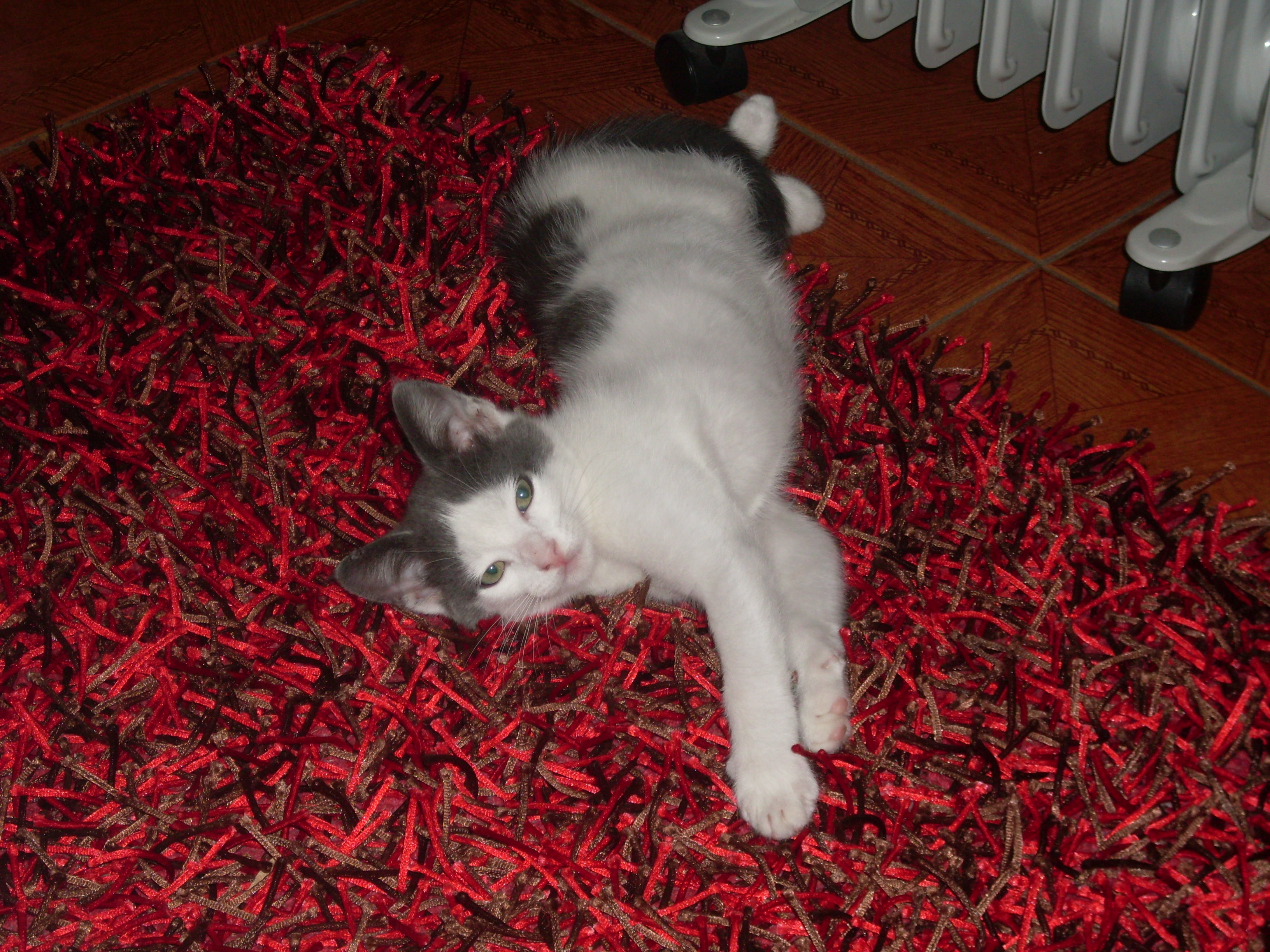 Deitado no tapete a apanhar o calor do aquecedor...
